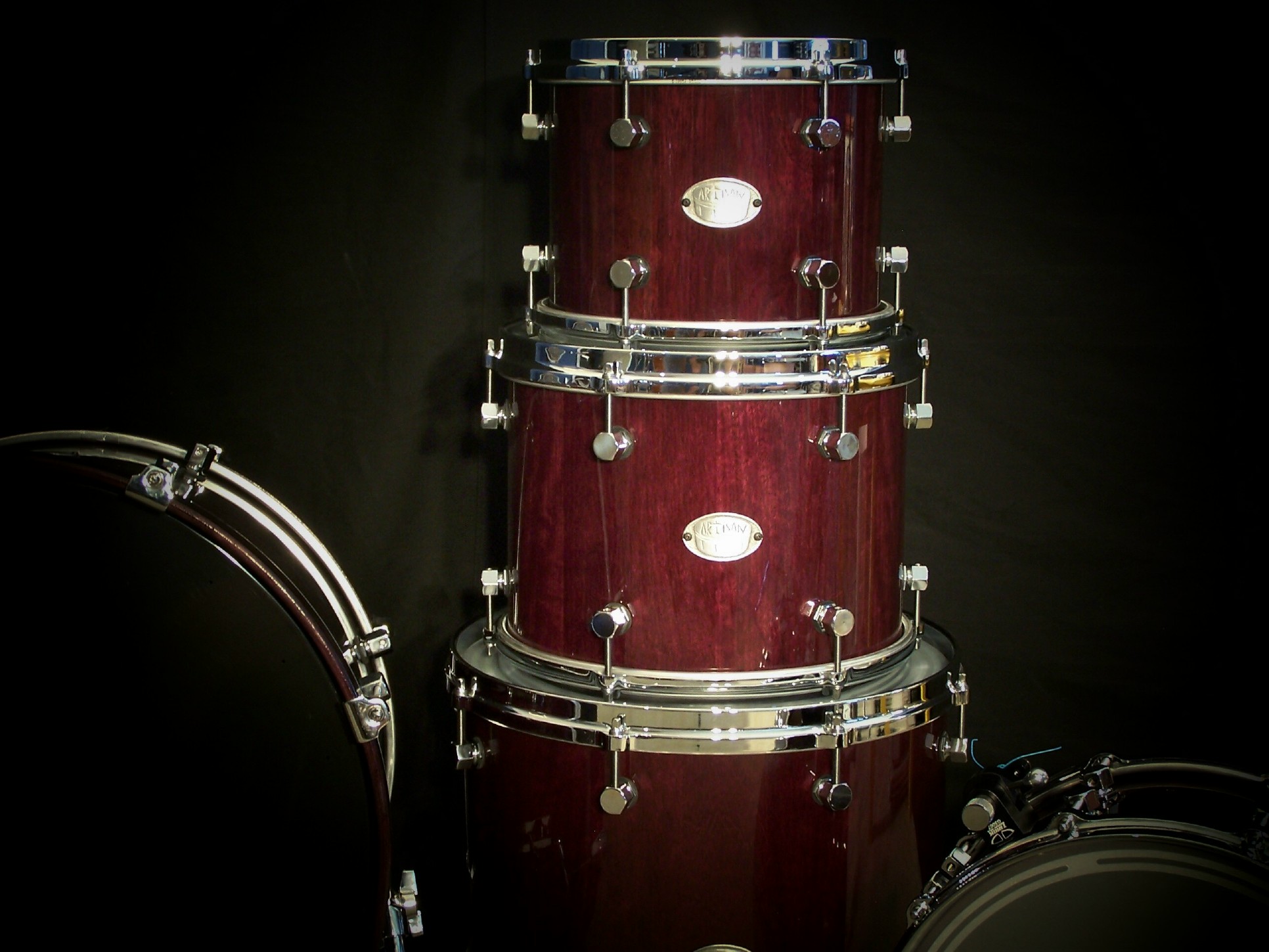 African Bubinga Drum Set, Black Chrome, Vintage Hoops, Hand Rubbed Satin